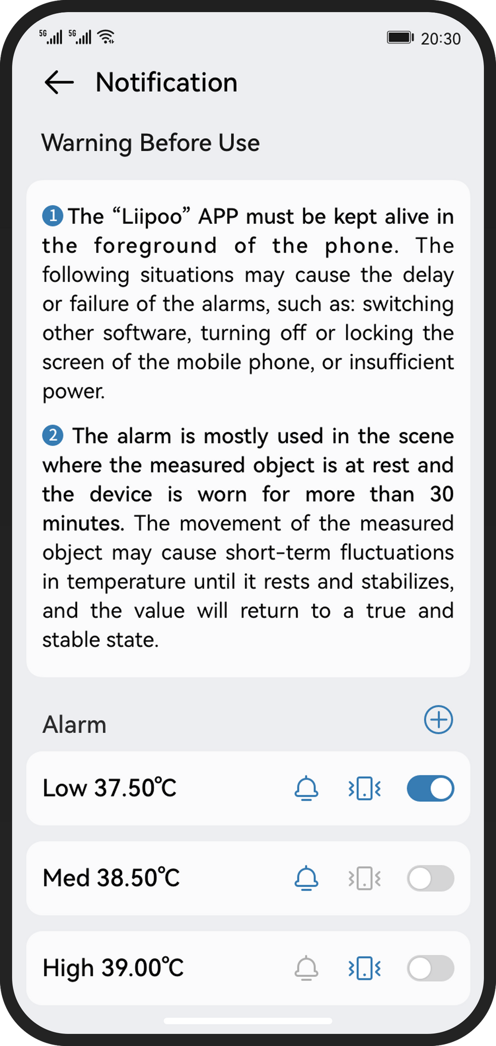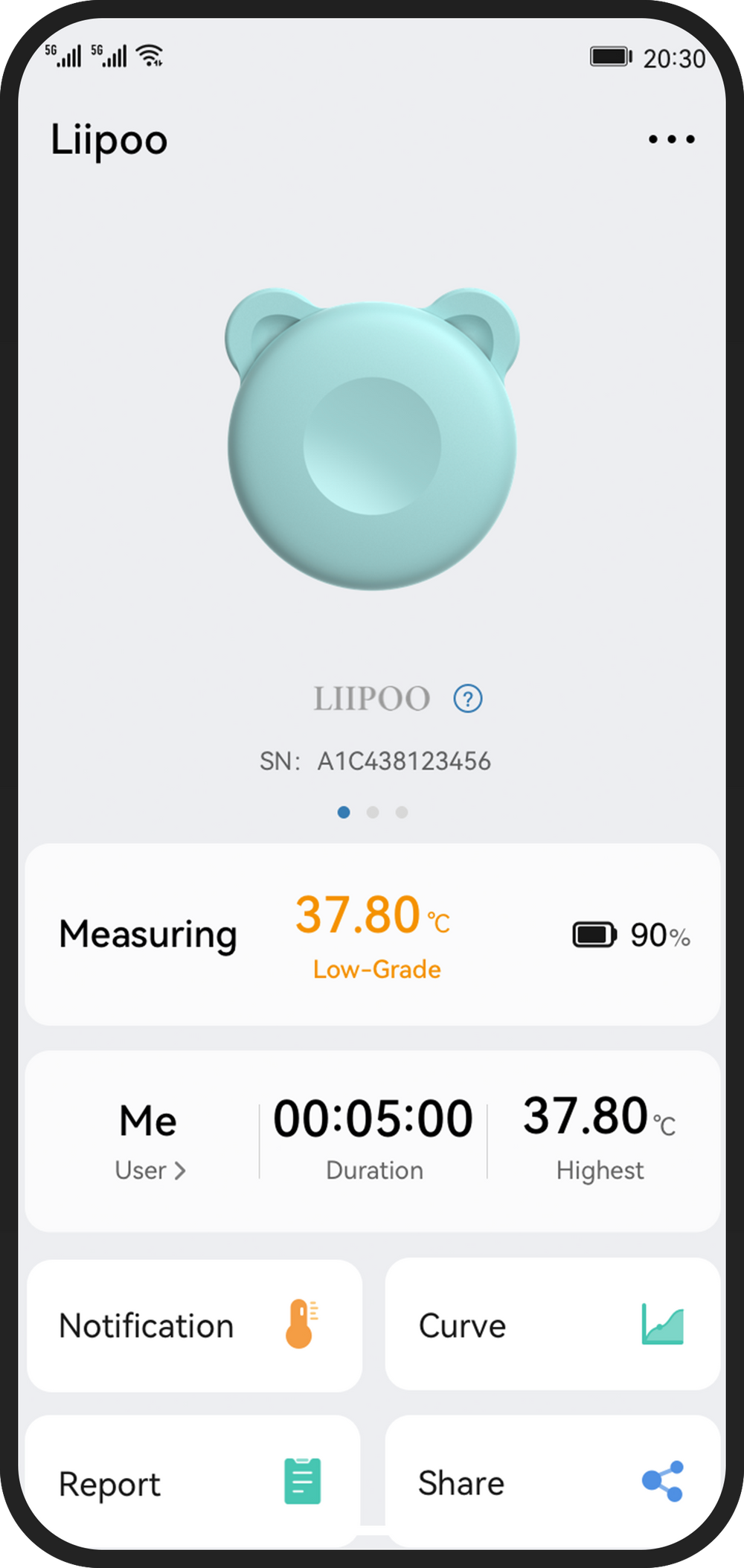 Liipoo's fourth-generation smart digital thermometer can help you monitor your baby's temperature in real-time. By setting the desired temperature alert, it will instantly notify you when the temperature rises to the specified threshold during a fever. It's a great helper for taking care of your baby.