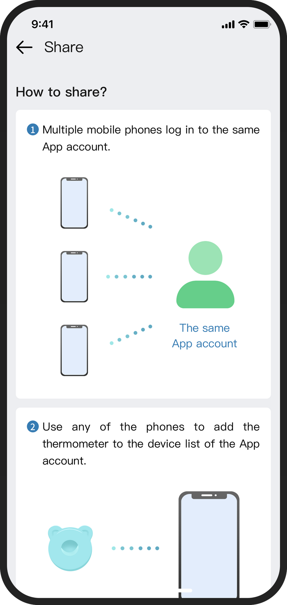 Share instantly on your mobile with WeChat, keeping track of your baby's temperature in real time. You no longer have to worry even when you're not by your baby's side! With just one mobile phone, you can monitor the temperature of three people simultaneously, providing an efficient temperature monitoring solution for multi-child families.